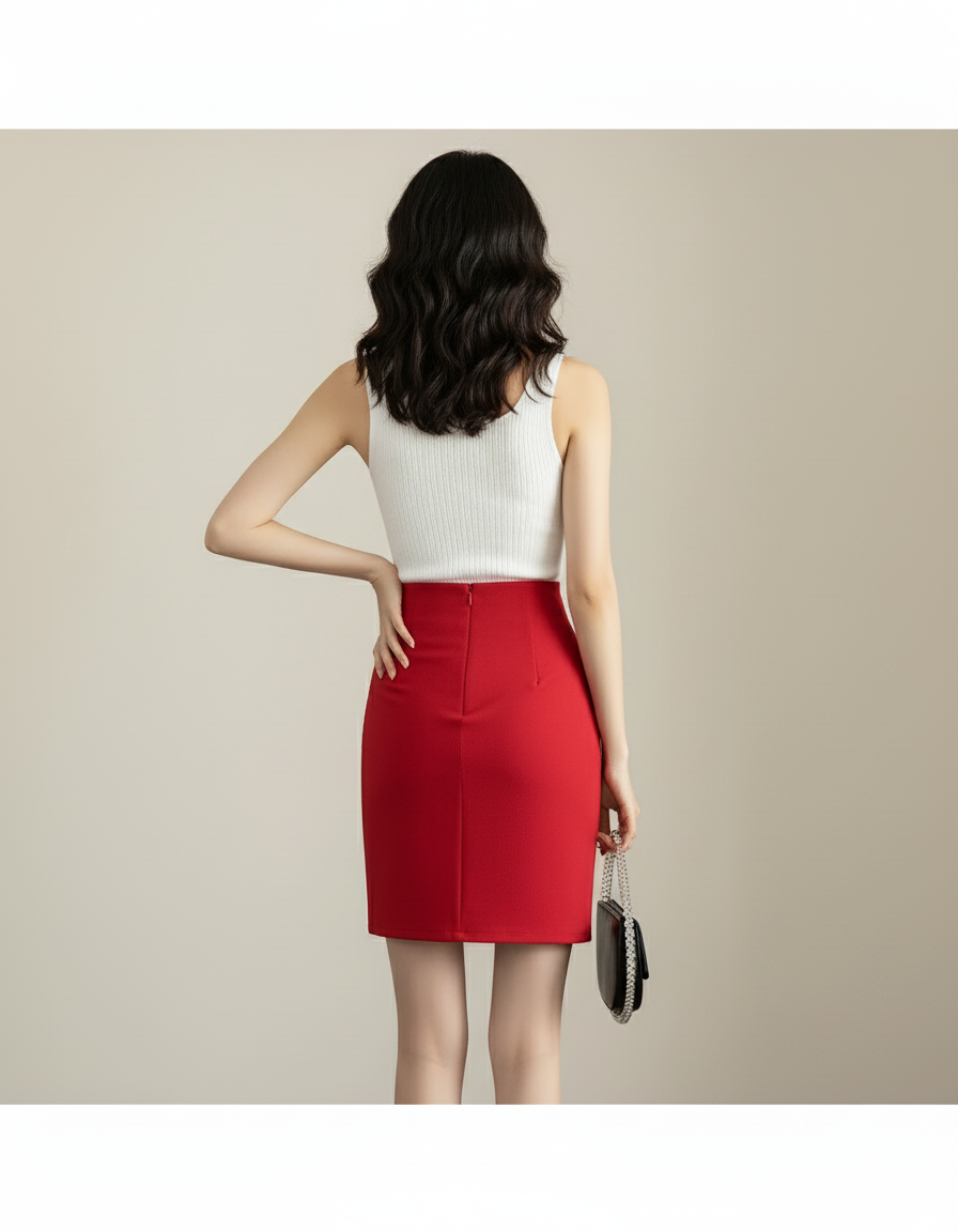 La Jupe Crayon Rouge Froncée : Élégance et Versatilité