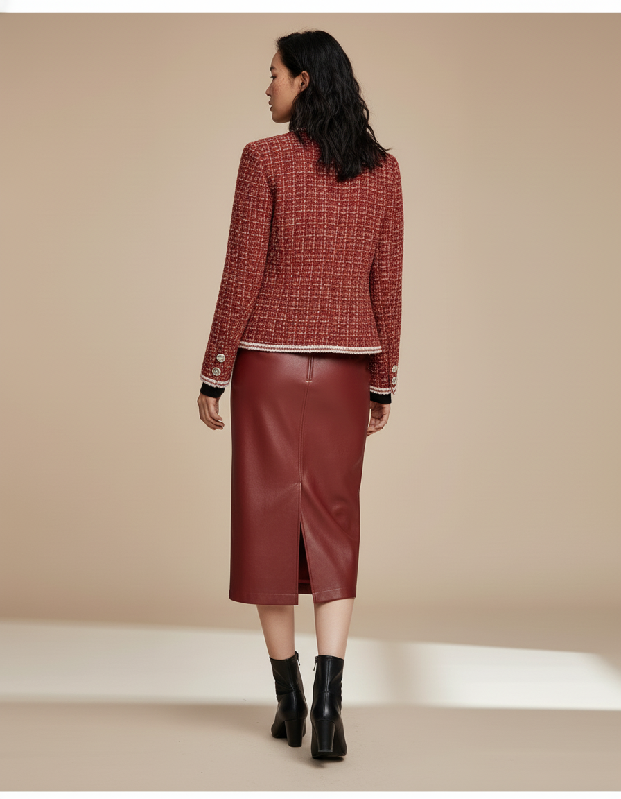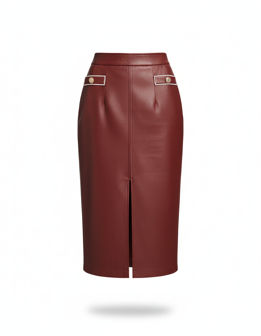Jupe Crayon Simili Cuir Bordeaux : L'Élégance Redéfinie