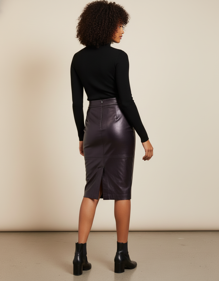 Conçue pour sublimer votre silhouette sans compromis sur le confort, notre jupe crayon offre un tombé impeccable qui épouse vos courbes avec élégance. Le simili cuir de haute qualité est doux au toucher, garantissant une liberté de mouvement surprenante pour une coupe aussi ajustée. Vous vous sentirez à l'aise et confiante, que vous soyez assise, debout ou en mouvement. Son design intelligent assure une tenue parfaite tout au long de la journée, sans se froisser, vous permettant de rayonner en toute circonstance.