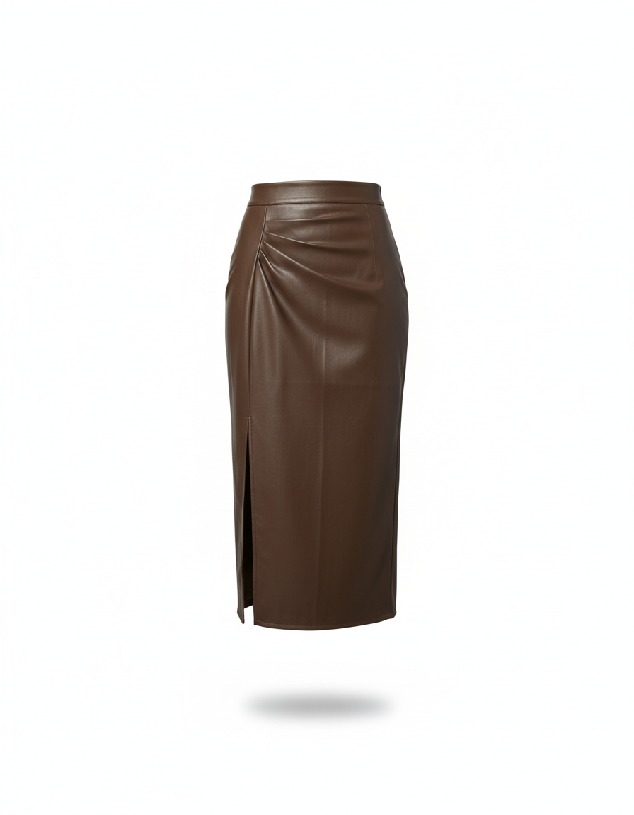 Jupe Crayon Taille Haute Fendue : L'Art du Chic en Cuir Marron