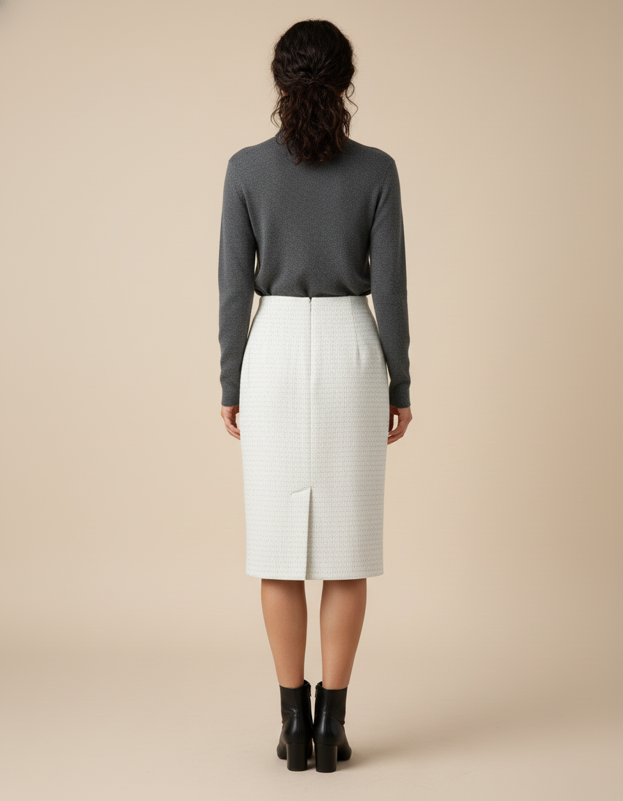 Ajoutez une touche de sophistication intemporelle à votre garde-robe avec notre jupe crayon en tweed élégante.