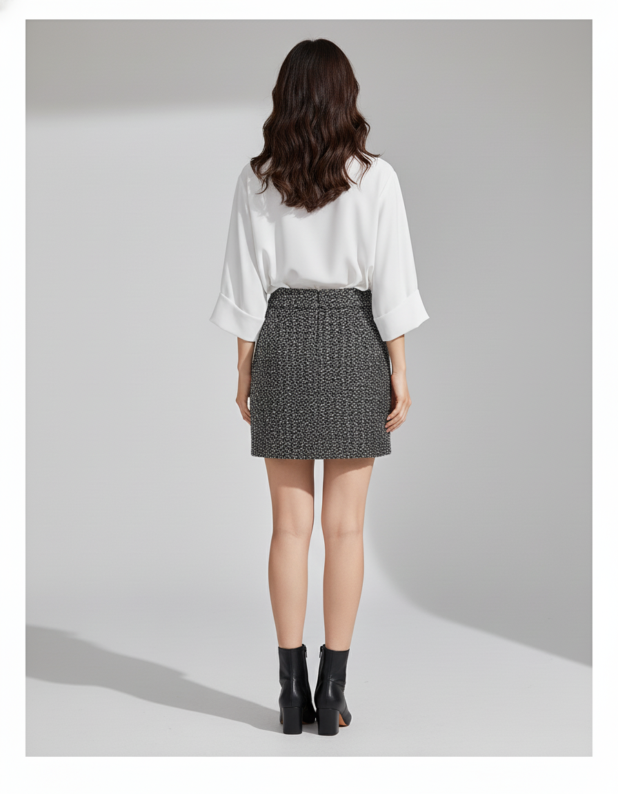 Caractéristiques de la Jupe Crayon Tweed Courte Chic