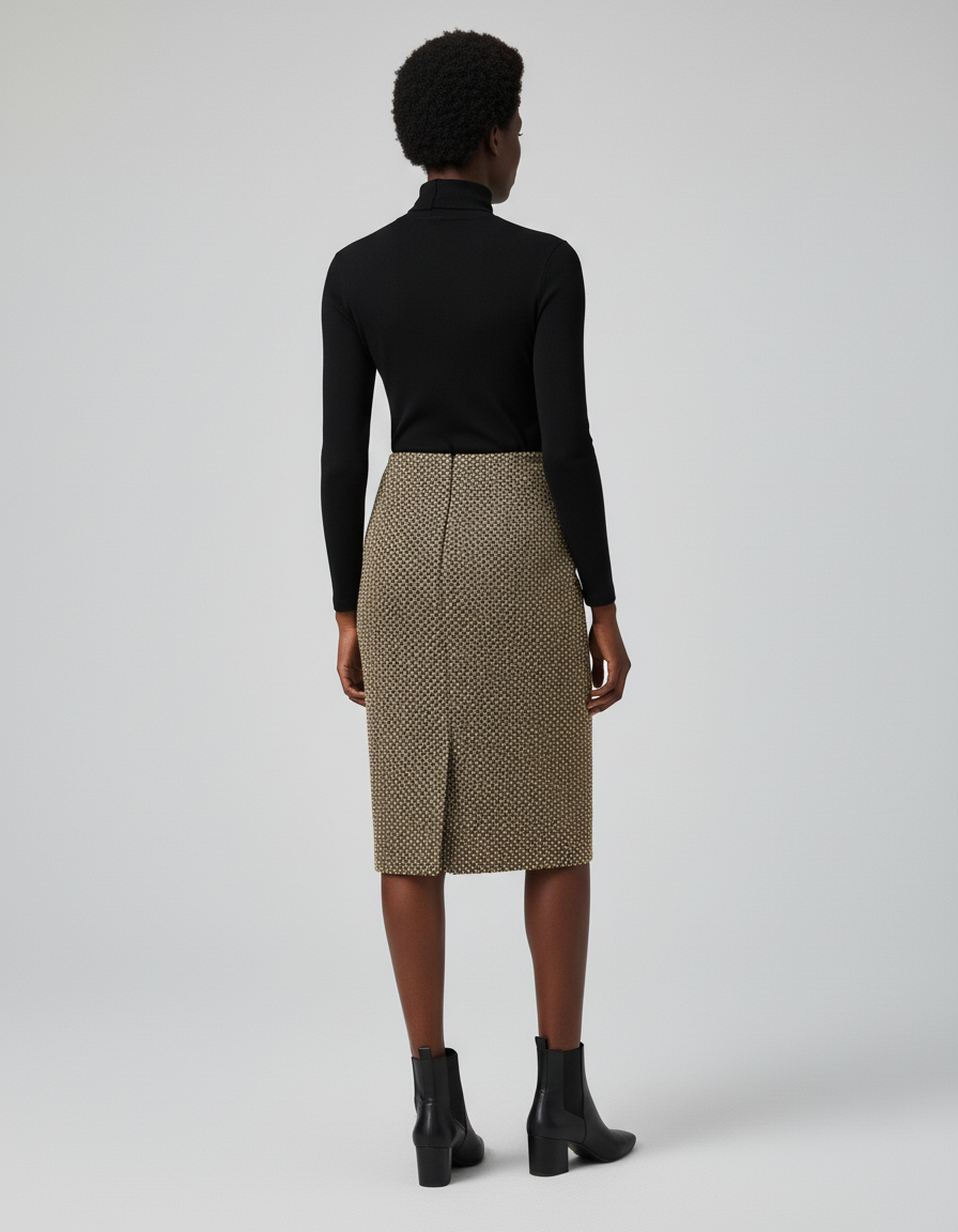 La Jupe Crayon Tweed Dorée Chic : L'Art de l'Élégance au Bureau