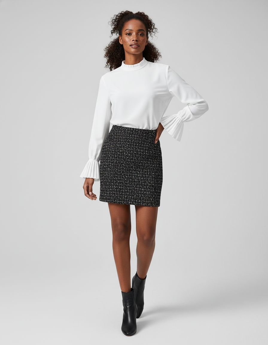 Jupe Crayon Tweed Noir Chic : L'Élégance Intemporelle Réinventée