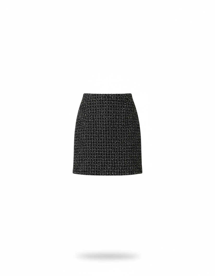 Cette jupe crayon en tweed noir est un incontournable pour une garde-robe élégante et moderne.