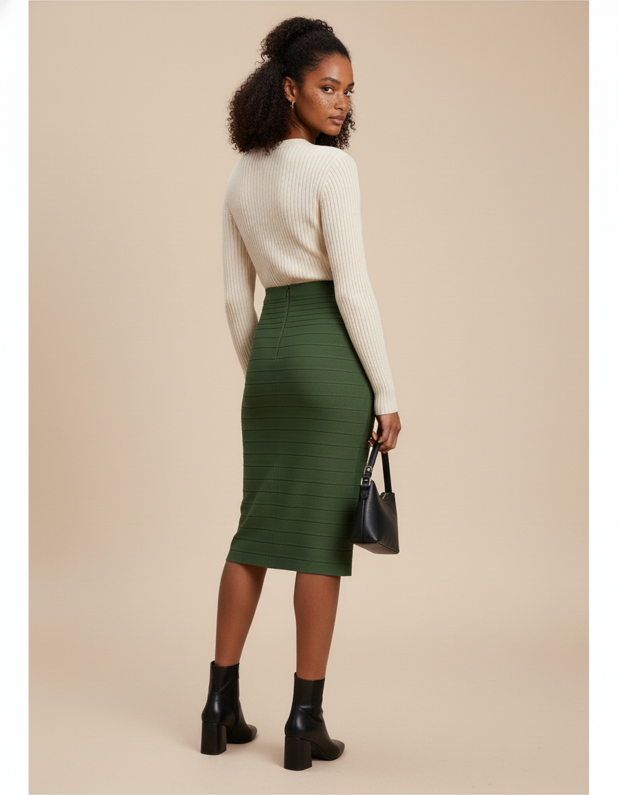 La Jupe Crayon Vert Texturée Chic : Votre Essentiel Polyvalent