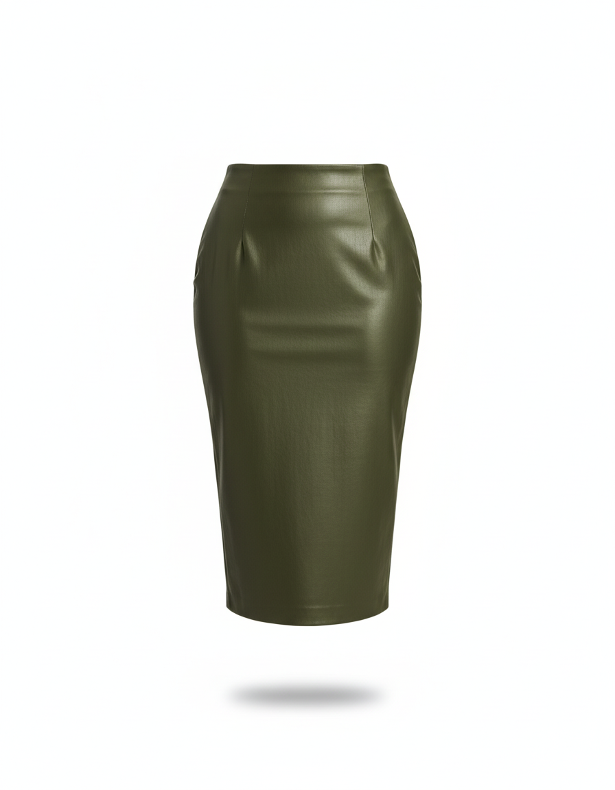 Caractéristiques de la Jupe Crayon Verte Similicuir Élégante
