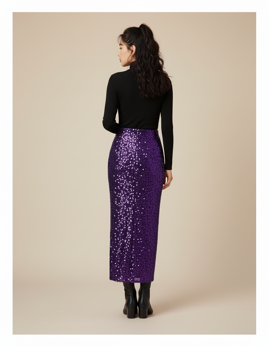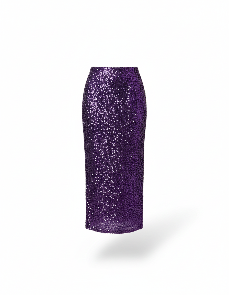 Éclat Inoubliable : La Jupe Crayon Violette Paillettes Chic