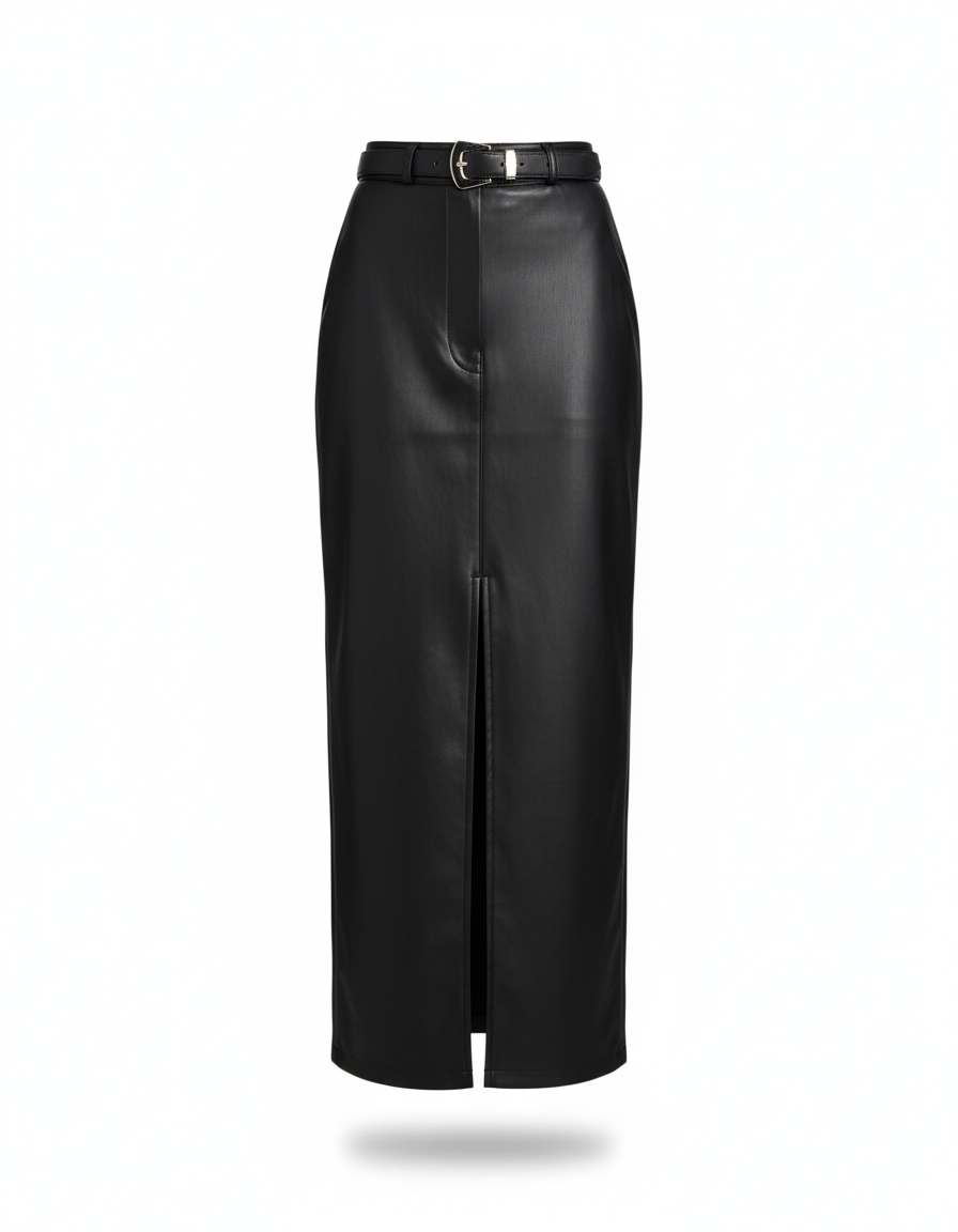 Jupe En Cuir Longue Crayon avec Fente Frontale