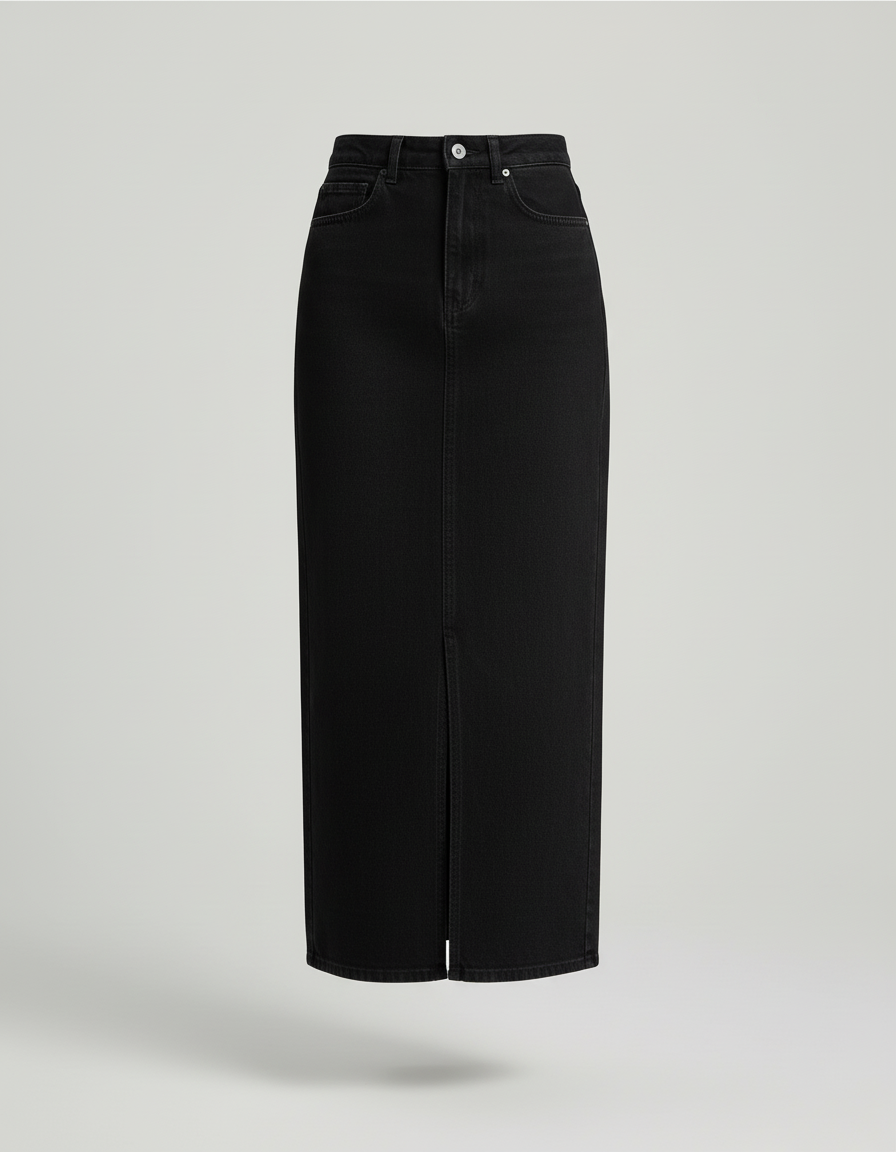 Découvrez notre jupe crayon en jean noir, un essentiel polyvalent pour votre garde-robe.